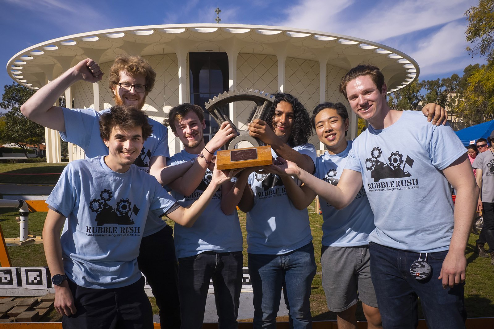 As with many of Caltech's time-honored traditions, the annual ME72 Engineering Design Competition pushes students to the limits of possibility. Unlike other Caltech traditions, ME72 involves ball-launching, self-driving, all-terrain robots—which occasionally burst into flames. [Caltech story]