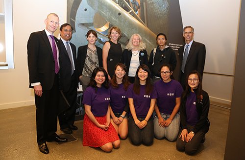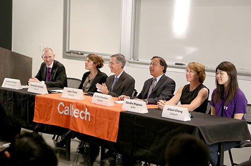 Panel members were: Domniki Asimaki, Caltech professor of mechanical and civil engineering; Caltech senior Aileen Cheng, the president of the Caltech Society of Women Engineers; Sandra H. Magnus, executive director of American Institute of Aeronautics and Astronautics; Andrew Smart, director of Society Programs and Industry Relations for SAE International; and John J. Tracy, chief technology officer of The Boeing Company.