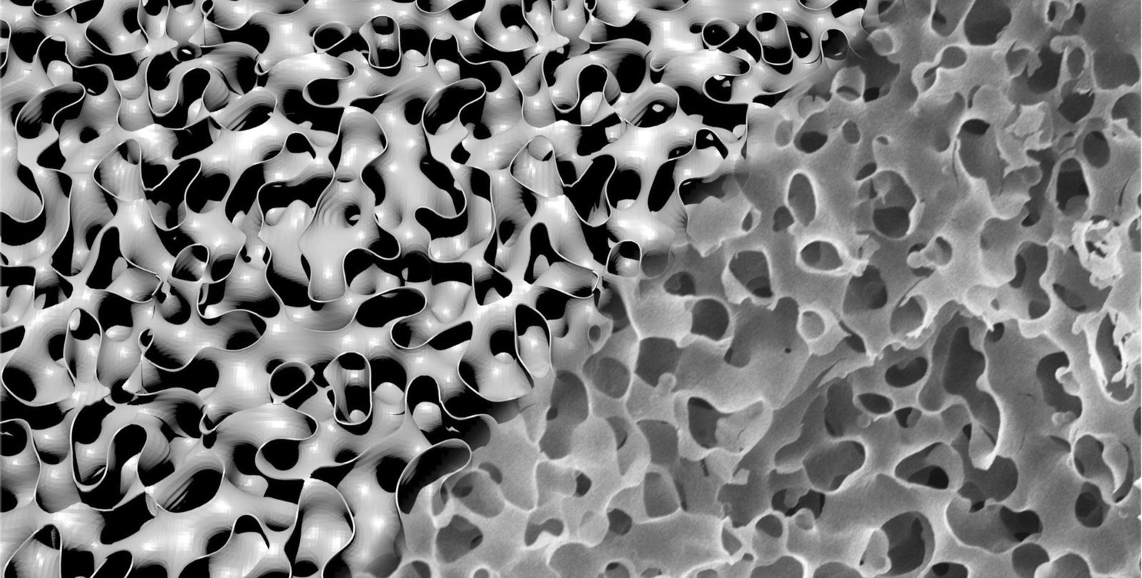 A new process developed at Caltech makes it possible for the first time to manufacture large quantities of materials whose structure is designed at a nanometer scale—the size of DNA's double helix. Pioneered by Julia R. Greer, Ruben F. and Donna Mettler Professor of Materials Science, Mechanics and Medical Engineering; Fletcher Jones Foundation Director of the Kavli Nanoscience Institute, "nanoarchitected materials" exhibit unusual, often surprising properties—for example, exceptionally lightweight ceramics that spring back to their original shape, like a sponge, after being compressed. Now, a team of engineers at Caltech and ETH Zurich have developed a material that is designed at the nanoscale but assembles itself—with no need for the precision laser assembly. "We couldn't 3-D print this much nanoarchitected material even in a month; instead we're able to grow it in a matter of hours," says Carlos M. Portela, Postdoctoral Scholar. "It is exciting to see our computationally designed optimal nanoscale architectures being realized experimentally in the lab," says Dennis M. Kochmann, Visiting Associate. [Caltech story]