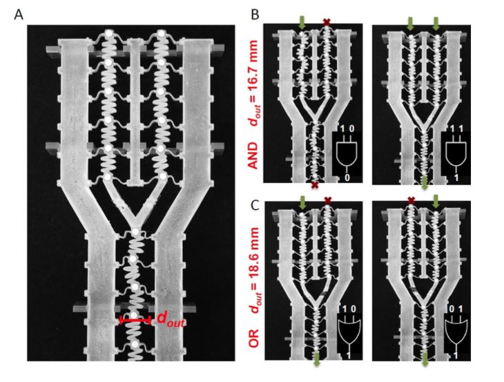 Professors Dennis M. Kochmann and Chiara Daraio along with colleagues from Harvard have designed and created mechanical chains made of soft matter that can transmit signals across long distances. Because they are flexible, the circuits could be used in machines such as soft robots or lightweight aircraft constructed from pliable, nonmetallic materials. "Engineers tend to shy away from instability. "Though there are many applications, the fundamental principles that we explore are most exciting to me," Kochmann says. "These nonlinear systems show very similar behavior to materials at the atomic scale but these are difficult to access experimentally or computationally. Now we have built a simple macroscale analogue that mimics how they behave." [Caltech story]