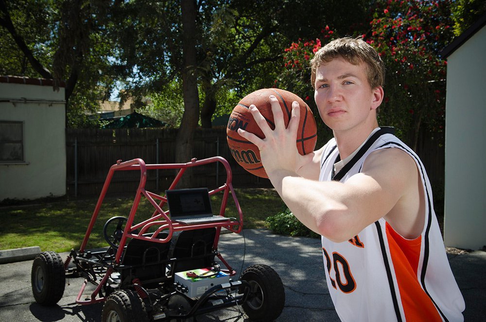 Rob Anderson, a junior on the Caltech men's basketball team, has been named to the 2015 Allstate National Association of Basketball Coaches Good Works Team. Anderson, who is studying mechanical engineering and business economics and management, was selected for his extensive work researching and designing sustainable energy projects. "After the Solar Decathlon ended in autumn of 2013, I began looking for another engineering sustainability project," Anderson says. "I noticed there were a few empty gas-engine go-karts in Fleming and I realized I could re-engineer them to use electric power… That's basically how the Sustainable Vehicle Club was born.” [Caltech story]