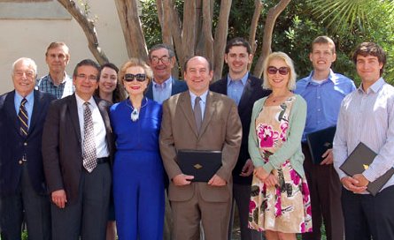 The student winners of the 2012 Demetriades - Tsafka - Kokkalis Prizes were announced at a special luncheon with the Demetriades - Tsafka – Kokkalis family. Philip Romero received the prize in Biotechnology for his work on developing statistical models of proteins with Frances Arnold. Michael Mello was the recipient of the prize in Seismo-Engineering, Prediction, and Protection for his work with Ares Rosakis on developing a novel methodology for identifying the unique ground motion signatures of supershear earthquakes. Leslie O'Leary received the prize in Environmentally Benign Renewable Energy Sources for her pathbreaking work on the properties of semiconductor interfaces with Nate Lewis and Bob Grubbs. This year there were two winners for the prize in Nanotechnology. One winner was Andrew Jennings for his experimental and modeling work in nanomechanics with Julia Greer. The other winner of the Nanotechnology prize was Jordan Raney who has worked with Chiara Daraio to develop new chemical synthesis methods to control the properties of carbon nanotubes.